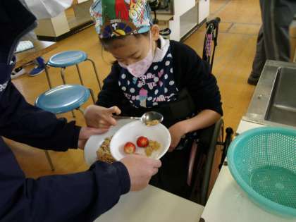 同時にすることがたくさんあり、子どもたちにとっては大変な作業でしたが、周りの大人のサポートを受けながら、自分の思うように盛り付けをしていました。