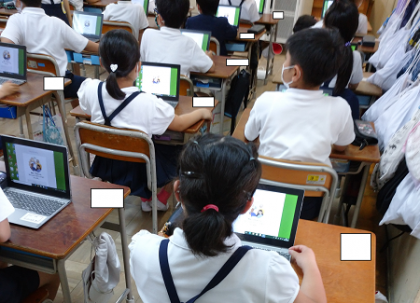 操作を終えた子が操作に困っている子に声をかけ、みんなで教えあう姿が見られました。