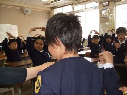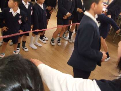 5年4組は「○×クイズ」でした。赤いテープで○と×とに分かれるクイズを楽しんでいました。