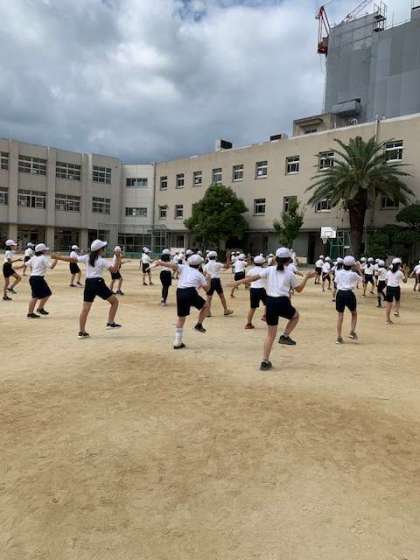 運動会の練習が始まっています。今年度の団体演技はエイサーです。リズムを取りながら体を動かす楽しさを感じています。みんなで動きを合わせる心地良さを味わってほしいと思います!
