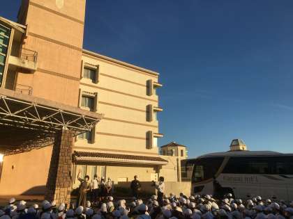 全員無事にホテルに到着し、開舎式を行っています。本日のホームページの更新はここまでです。これ以後は、明日の朝に更新します。