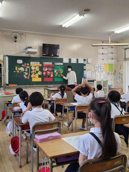 栄養教諭の佐藤先生が2年生に栄養指導の授業をして下さいました。子どもたちはいつもと違った学習に興味津々で、食べ物についての理解を深めました。
