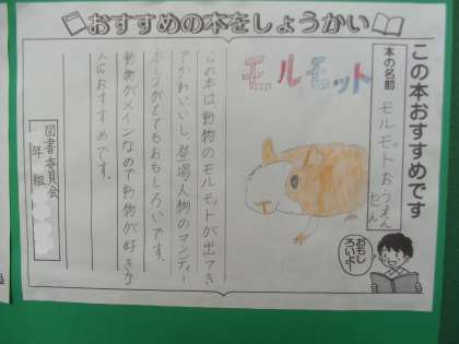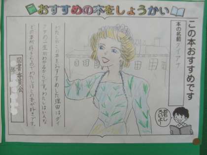 図書委員会は「おすすめの本」を図書室前に貼り出しました。