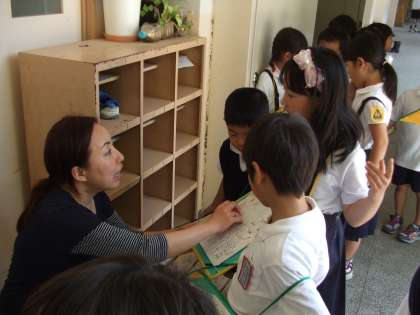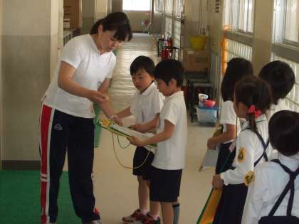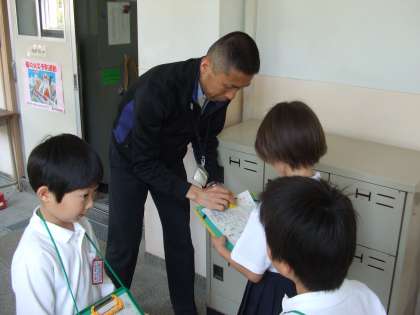 5月1日に、学校では2年生が1年生を連れて「学校たんけん」をしました。