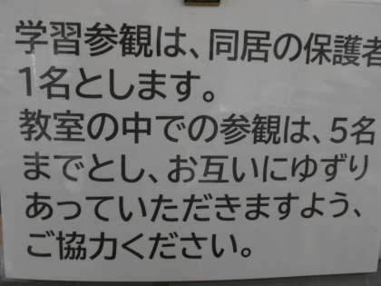 ◎ 教室の中での参観は5名まで とし、お互いにゆずりあっていただきますようご協力をお願いします。