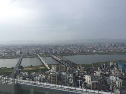 大阪駅では、梅田スカイビルの展望台で大阪市の東西南北にそれぞれ何が見えるのかを学習できました。外国からのお客さんもたくさんいらっしゃり、声をかけられて、フレンドになった子もいたようです。
