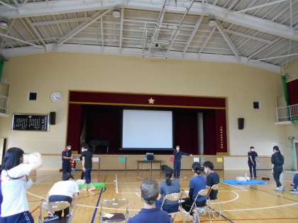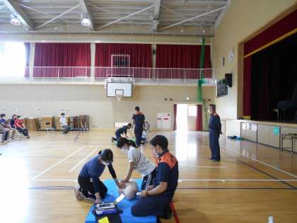 胸骨圧迫やAEDの使用法についての一連の流れを学びました。