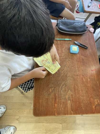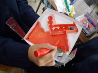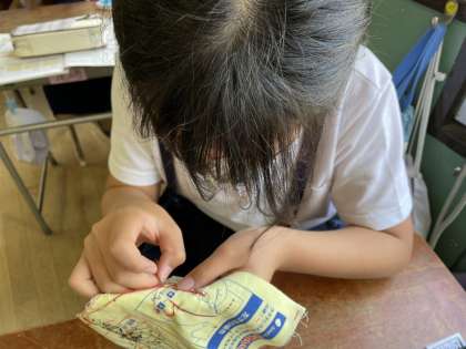家庭科の学習で裁縫の練習をしました。これからいろいろな作品づくりに取り組んでいきます。