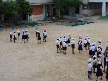 今日のたてわり班活動は、2・4年生で「ばくだんゲーム」をしました。