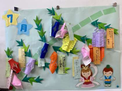 なかよし学級会では、七夕の飾りつけと願いごとを書きました。