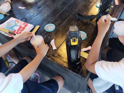 制作を頑張ったあとはかき氷を食べながら一休みしました!