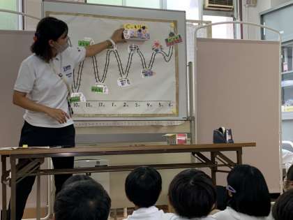 この日は、発育測定のあとに睡眠についての学習をしました。子どもたちは、真剣に先生のお話を聞いていて、発表も元気にしていました。