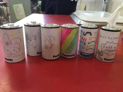 材料は、二酸化マンガンや炭素棒など、普段はあまり目にしないものもありましたが、先生の話をしっかり聞き、30分程度で完成させられました。