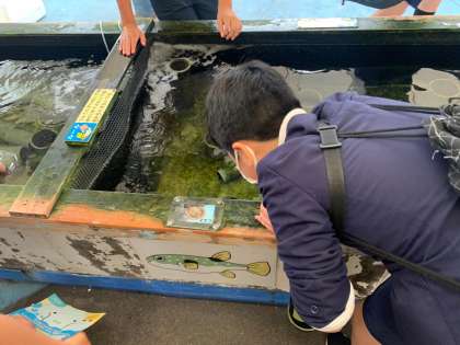 生き物との触れ合いゾーンでは、ドクターフィッシュやタコ、エイなどの魚たちと触れ合いました。