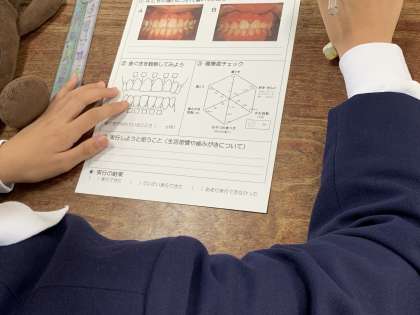 今日、歯科衛生士の方が来られて、歯周病についてや歯磨きの注意点について学習しました。歯周病や虫歯は、生活習慣病なので、普段の生活を見直すことが最も大切だということを教えてもらいました。最後に、自分で目標を決めたので、今後それが続けられるか、ぜひ見守りをよろしくお願いします!