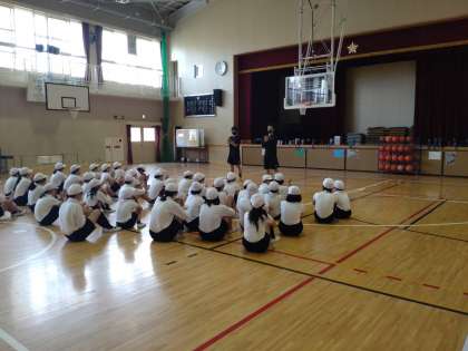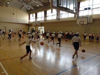今日、プロのバスケットボールチーム「エヴェッサ」の方々が成育小学校に来られて、バスケットボールの指導をしてくださいました。