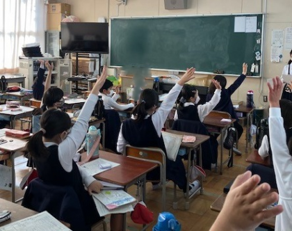 保健委員会の児童が担当教室を回り、『清潔なハンカチを持ってきましたか』『ていねいに手を洗い、ハンカチで拭きましたか』とチェックを行いました。