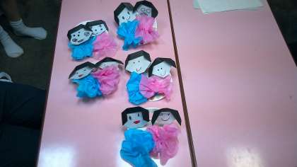 ひな祭りの作品作りをしました。器用にお花紙をじゃばらに折ったり、お内裏様とお雛様の表情を可愛らしく描いたりと、各々が得意なことをいかして活動することができました。