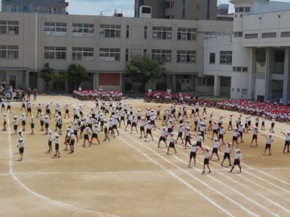 クラスごとに違うカラフルな軍手と元気いっぱいの笑顔が、咲きました!