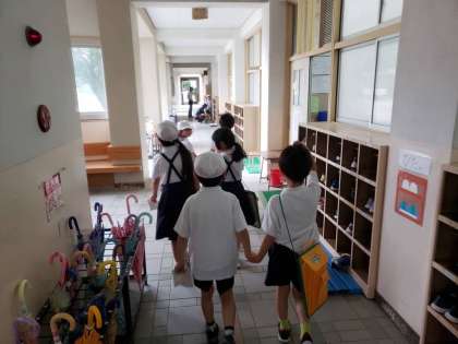 お兄さん、お姉さんらしく1年生の手を引いて案内をしていました。