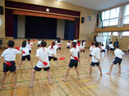 応援団は4年生以上の児童で構成されています。学年の枠を超えて