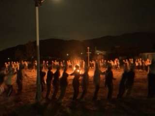 昨日の夕方は班ごとに協力してカレーを作り、その後はキャンプファイヤーをしました。