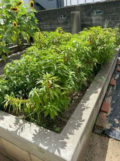 なかなか背丈が伸びなかったのですが、夏休みの間にどんどん伸びていき、思ったよりもたくさんの葉がつきました。