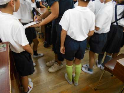 無事避難出来たことを確認した後、各学級教室に戻り、担当の先生や校長先生からのお話を静かに聞きました。