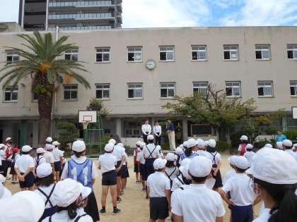 最後に、教育実習生2名の紹介がありました。今日から9月29日までの4週間、大学で学んだことを基に、成育小学校でいろいろなことを経験し、たくさん勉強してくださいね。