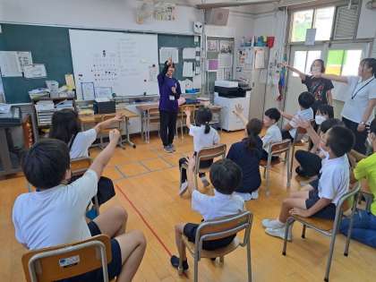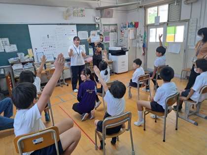 教育実習生の先生たちにも参加してもらい、後出しじゃんけん・3ヒントクイズ・動物探しゲームなどいろいろなゲームを行いました。子どもたちから出ためあて「なかよく、たのしく、たすけあおう!」を守り、たくさんの笑顔が見られた学級会になりました。