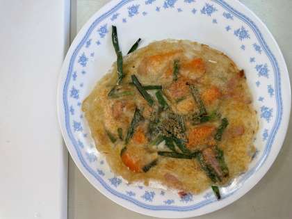 今月初めにアンニョン週間があり、韓国・朝鮮の文化について学びました。その活動と関連させて、家庭科の調理実習では「韓国風チヂミ」を作りました。