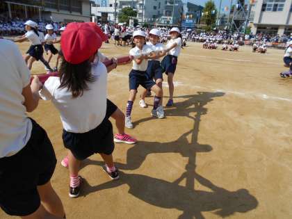 5年生の団体競技は「棒引き〜力を合わせて〜」でした。