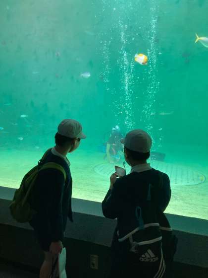 鳥羽水族館に到着しました!世界で2頭しかいないジュゴンやイルカショーを見たらなどグループで計画を立ててまわります!みんなで仲良く楽しみましょう!