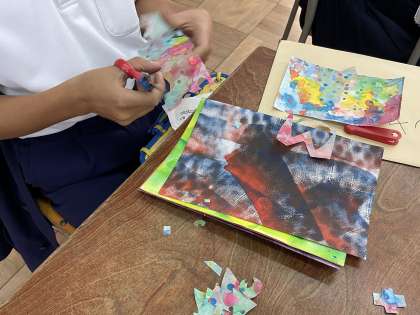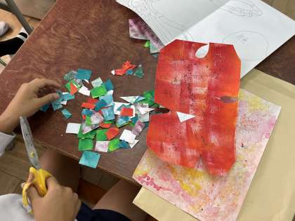 3年生は、作品展に向けて「天空のあばれりゅう」と「スペシャルフェイス」をつくっています。子どもたちの個性が、平面作品と立体作品それぞれに表れていて、とても素敵に仕上がってきています。