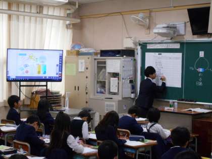 導線の間にいろいろなものをはさんで、豆電球に明かりがつくかどうか、予想を立てて、グループで実験しました。