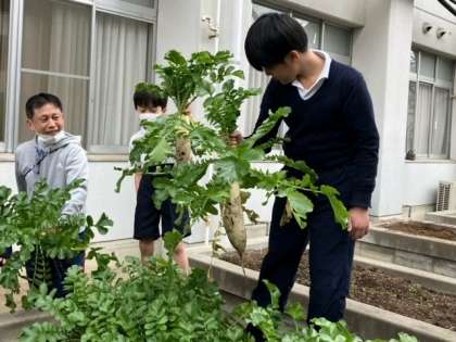 「大根が折れないように上へまっすぐ引き抜く」というコツを聞き、慎重になりながらも力強く大根を引き抜くことができました。