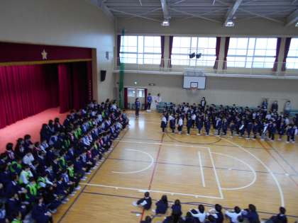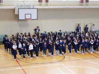 「ありがとうの花」をジェスチャ—をつけて披露し、最後に1年生全員で「6年生!だいすき!!」と大きな声を届けてくれました。