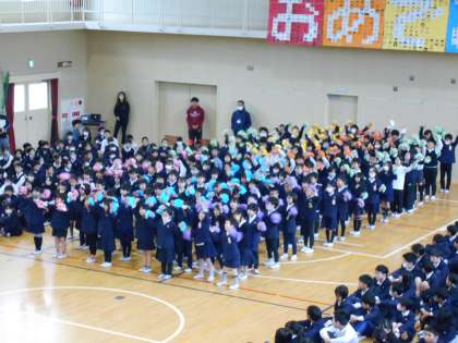 2年生は、「はじまりのうた」を披露しました。6年生のふりかえりとして、「6年生が〇年生の時」として、〇年生の時の人気の歌やアニメを紹介しました。