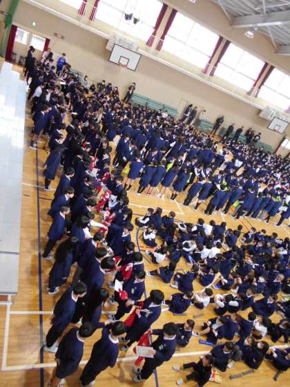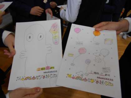 1〜5年生からはメッセージのプレゼントを、6年生からは手作り雑巾のプレゼントを贈り合いました。