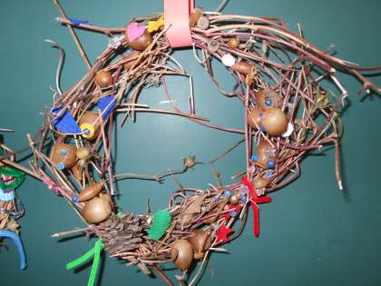 ました。飾りは、遠足で拾ったドングリや家から持ってきたモールやリ