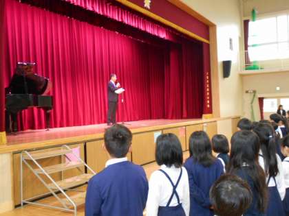 新しく着任された井上校長先生から「今日は、新しい出会いを体験する日です。お友だちや教職員との出会いを発展させましょう。そのためにも自分からすすんであいさつができるといいですね。」とお話がありました。