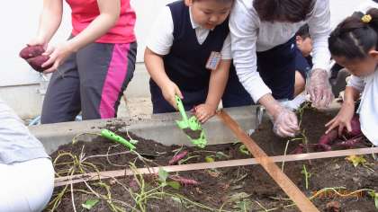 掘って最後は手で芋を掘りました。みんな、真剣に芋ほりに取り組ん