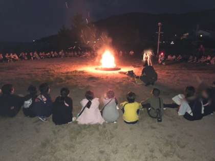 琵琶湖の浜辺でキャンプファイヤーをしました。