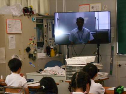校長先生から「学校は楽しいですか?」の問いに、すぐに大きな声で「はい。」とテレビの画面の校長先生に向かって多くの子どもが答えていました。
