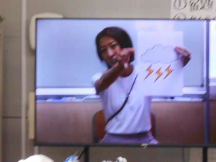 7月1日(月)のテレビ朝会で、防災担当の先生から「今は梅雨ですね。この季節には、かみなりが発生することがあります。もし雷が鳴ったらみなさんはどうしますか?」と質問がありました。