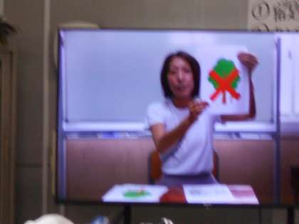 「木の下に避難するのは?」との問いかけに「だめ!!」と多くの子どもたちが答えていました。