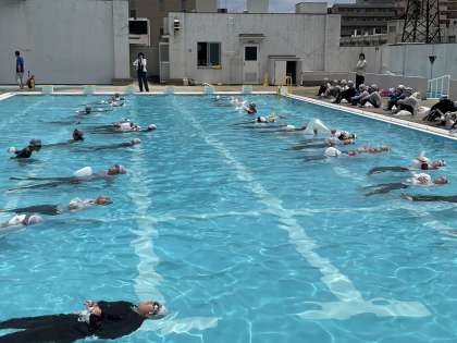 7月10日(水)に着衣水泳を行い、川や海に落ちた時、命を守るためにどうすればよいか。」について考えました。