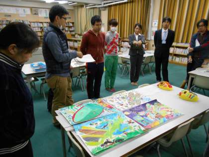 説明をしあいました。作品の見方や作品をつくる時の指導のポイン