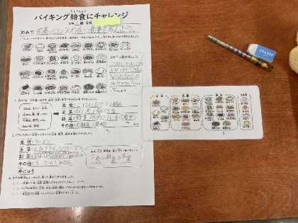 「栄養バランスの良い食事を考えよう」のめあてで、たくさんある食べ物から理想の給食メニューを作りました。