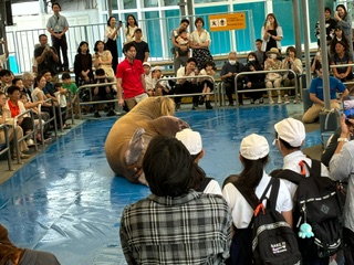 グループで様々な生き物と触れ合っています。珍しい魚たちを見て、驚きの声がたくさん聞こえます!